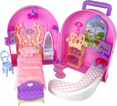 Valiză mare pliabilă cu mobilier pentru păpuși