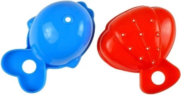 Setul conține de asemenea forme în formă de pește și scoică, pe care copiii le pot folosi pentru jocul cu nisip și apă.