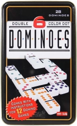 Descoperiți jocul de masă atemporal, potrivit atât pentru copii, cât și pentru adulți. Domino-ul cu puncte colorate este ideal pentru serile în familie, călătorii și momentele libere. Piesele robuste în cutia metalică practică se depozitează și se transportă ușor, astfel încât distracția este mereu la îndemână.