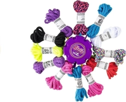 Setul conține 12 sfori în culori diferite, care permit realizarea de brățări multicolore după imaginația ta.