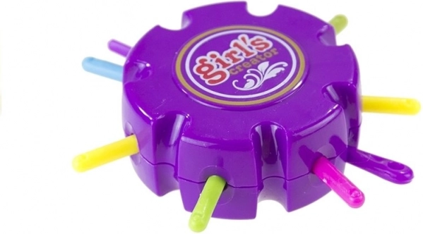Setul include un dispozitiv circular care ușurează împletirea brățărilor și ajută la crearea unor modele complexe.