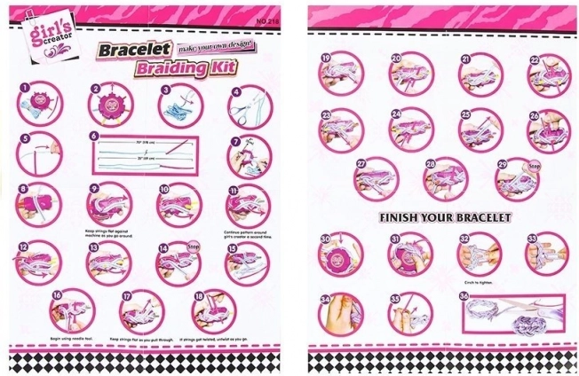 Setul include 12 sfori multicolore, cu diametrul de aproximativ 0,5 cm. Fiecare dintre ele poate fi folosită pentru a crea o brățară sau o împletitură. În plus, în pachet se află un dispozitiv care ușurează împletirea și realizarea brățărilor.
