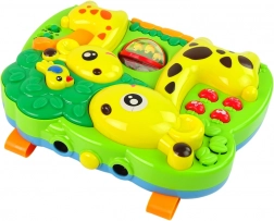 Dimensiunile jucăriei sunt 17,5 cm x 22,5 cm x 6 cm, iar dimensiunile ambalajului sunt 31 cm x 26 cm x 8 cm. Acest produs este destinat copiilor peste 12 luni și necesită patru baterii AA 1,5 V, care nu sunt incluse.