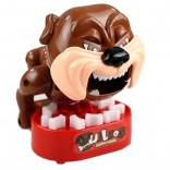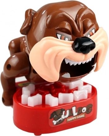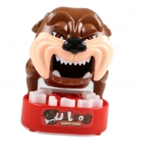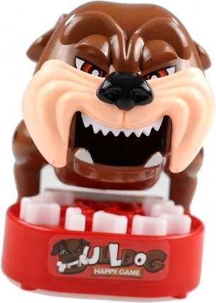 Bulldogul mușcător este un joc de societate simplu, dar surprinzător de palpitant, pentru mici și mari. Reglați capul buldogului, așezați-l pe labele din spate și încercați pe rând să „furați” oasele. Niciodată nu știți când va înșfăca fulgerător – decid norocul, viteza și curajul.