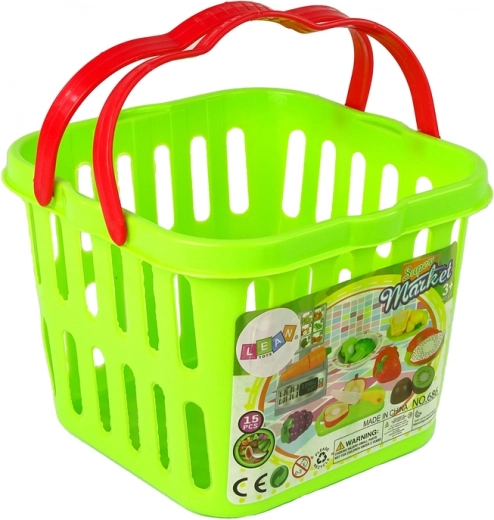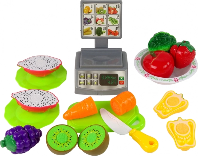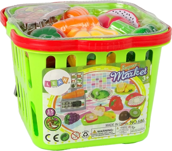 Setul este alcătuit dintr-un coș verde umplut cu diverse fructe și legume, precum și din bol, farfurii, cuțit, tocător și cântar de cumpărături. Alimentele pot fi așezate pe tocătorul inclus și tăiate cu cuțitul special. Jumătățile de fructe și legume pot fi cântărite pe cântar, care este o copie fidelă a celui din supermarketuri, apoi așezate pe farfurii sau amestecate în bol. După terminarea degustării, jumătățile de fructe și legume pot fi reunite simplu și imediat. Cum? Toate alimentele sunt prevăzute cu benzi speciale cu arici (velcro), care permit separarea și combinarea repetată.