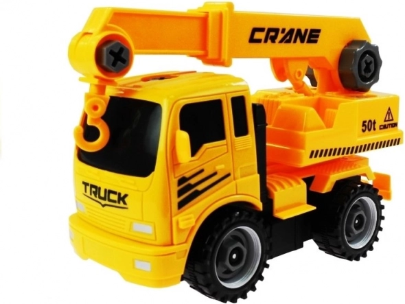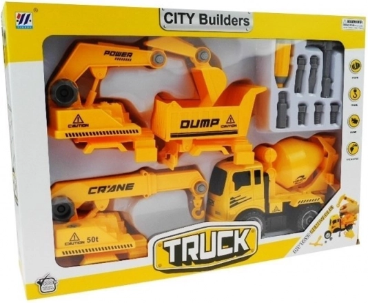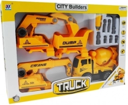 Acest set distractiv este ideal pentru micii pasionați de vehicule de construcții. Conține patru vehicule de bază: betonieră, basculantă, macara și excavator. Fiecare vehicul poate fi ușor demontat și reasamblat cu ajutorul unei șurubelnițe practice cu capete interschimbabile, ceea ce susține dezvoltarea abilităților manuale.
