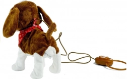 Câinele de pluș interactiv este realizat din material moale, non-toxic și ecologic, plăcut la atingere. Jucăria are ochi mari și întunecați, o coadă veselă și o eșarfă roșie pentru un farmec sporit. Lesa lungă cu telecomandă permite copilului să controleze mișcările câinelui cu ușurință, făcând jocul foarte realist și interesant.