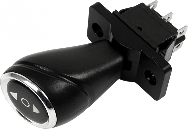 Comutator fiabil cu trei poziții pentru vehicule electrice, care permite controlul ușor al direcției de mers: înainte, stop și înapoi. Datorită construcției fără revenire automată, levierul rămâne în poziția dorită, ceea ce crește confortul și siguranța în utilizare.
