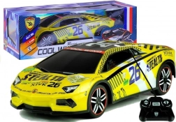 Această mașină sport RC aduce aspectul dinamic al unui vehicul de curse și un control ușor pentru copii de la 3 ani. Datorită materialului PVC rezistent și roților din cauciuc, face față diferitelor suprafețe, în timp ce frecvența 27 MHz ajută la minimizarea interferențelor în timpul condusului. Stickerele realiste și caroseria galbenă subliniază caracterul de curse.