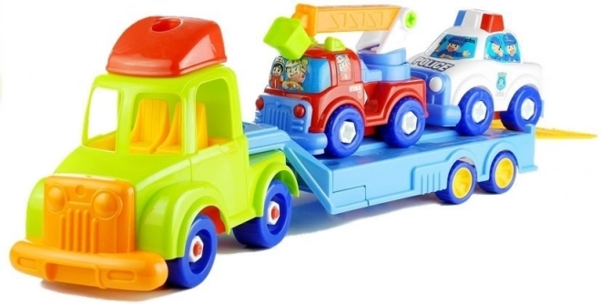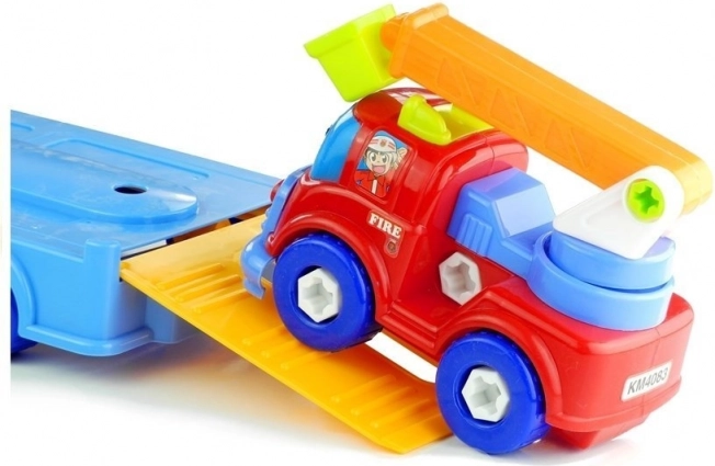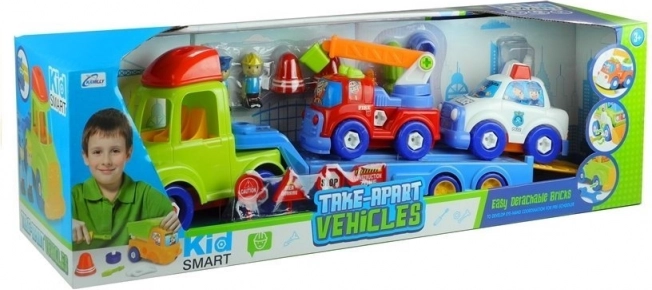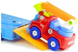 Acest set viu colorat de vehicule, care permite dezasamblarea și asamblarea, stimulează creativitatea și abilitățile motrice ale copiilor. Include un transportator, o mașină de poliție și un camion de pompieri, care pot fi ușor deșurubate cu unelte de plastic. Această jucărie interactivă combină oportunitățile de joc comun cu părinții sau frații și, în același timp, jocul individual.