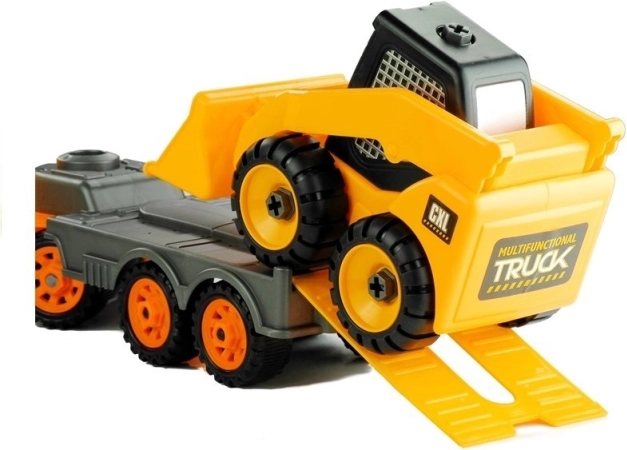 Pachetul include și unelte, cum ar fi o șurubelniță cu capete interschimbabile, care le permite copiilor să desfileze diverse piese, cum ar fi roțile, cupele sau remorcile. Detaliile individuale și ferestrele întunecate adaugă atractivitate acestor jucării. Ambele vehicule sunt fabricate din materiale sigure, certificate, asigurând o joacă îndelungată și sigură.