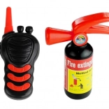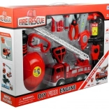 Setul complet pentru jocul de-a pompierii dezvoltă imaginația, motricitatea fină și cooperarea. Copiii pot „pleca” la intervenții cu mașina de pompieri cu mecanism inertial, pot ridica și extinde scara cu coș, pot „stinge” cu stingătorul și pot comunica prin stația radio. Ochelarii și masca intensifică rolul.