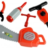 Sunt incluse și unelte de lucru cu capete interschimbabile și un fierăstrău pentru copii, cu care micii meșteri pot strânge șuruburi și ajusta detalii. Totul este din plastic ușor, rezistent și sigur, potrivit pentru copii de la 3 ani. Setul este ambalat într-o cutie cadou cu fereastră și mâner – ideal ca cadou grozav.