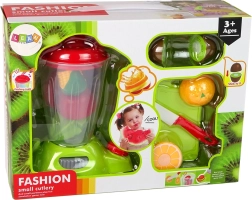 Setul este realizat din plastic rezistent și, datorită aspectului realist, pare un echipament de bucătărie adevărat. Fructele și legumele se îmbină cu ajutorul ariciului, astfel încât copiii le pot tăia și reasambla iar și iar. Blenderul este alimentat cu 2× AA 1,5 V (bateriile se introduc în capac).