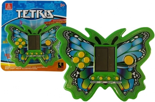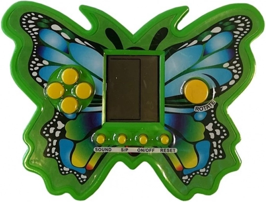 Jocul electronic Tetris în formă de fluture aduce distracție atemporală într-un format compact și rezistent. Rotiți și așezați piesele care cad astfel încât să umpleți rândurile întregi și să obțineți cât mai multe puncte. Cu fiecare rând eliminat, viteza crește și jocul devine mai captivant.