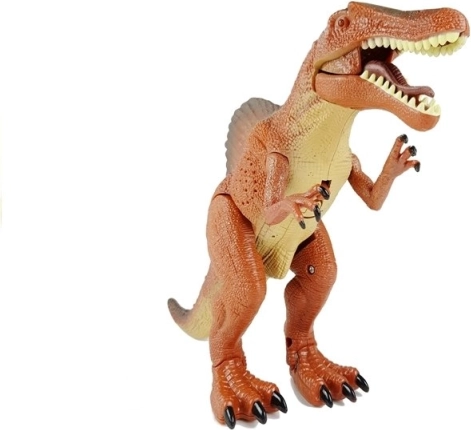 Jucăria are un craniu lung, drept și o siluetă masivă, musculoasă. Este alimentată de baterii de 1,5V tip "AA", incluse în set. După activare, marele dinozaur începe să meargă și să râge. Efectele luminoase, precum ochii care clipesc, intensifică și mai mult această experiență deosebită.