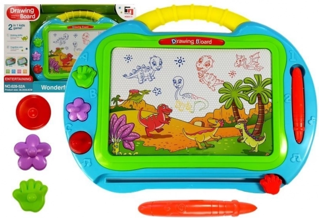 Tăbliță magnetică de desen pentru copii, distractivă și educativă, cu o suprafață mare de desen, stylus și 3 ștampile. Creați imagini multicolore, le ștergeți ușor și susțineți creativitatea și motricitatea fină. Datorită mânerului, tăblița este ușor de transportat și potrivită atât pentru fete, cât și pentru băieți.