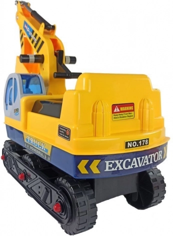 Produsul este destinat copiilor peste 3 ani – poate fi folosit de toți copiii cu greutatea de până la 25 kg. Asamblarea vehiculului ar trebui efectuată de un adult – în pachet se află piese mici. Datorită instrucțiunilor incluse la vehiculul pentru copii, puteți asambla excavatorul foarte ușor singuri. Produsul are certificare CE și în producția sa au fost folosite materiale sigure pentru copii.