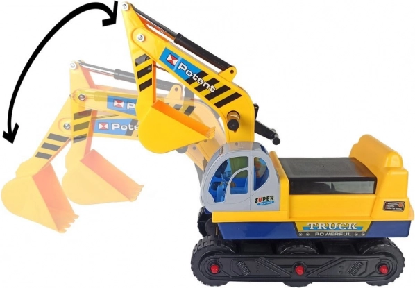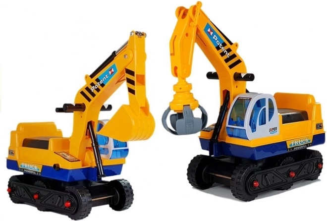 Fiecare copil visează să își opereze propriul excavator. Stând pe vehiculul prezentat, micuțul vostru se va simți ca pe un șantier real. Excavatorul are un braț lung și mobil. Excavatorul galben din set are un braț interschimbabil. Într-o clipă puteți trece de la operarea excavatorului la operarea unui vehicul cu gheară. Acum vom putea prinde și transporta diverse jucării. Acest lucru dezvoltă perfect îndemânarea manuală a copilului.