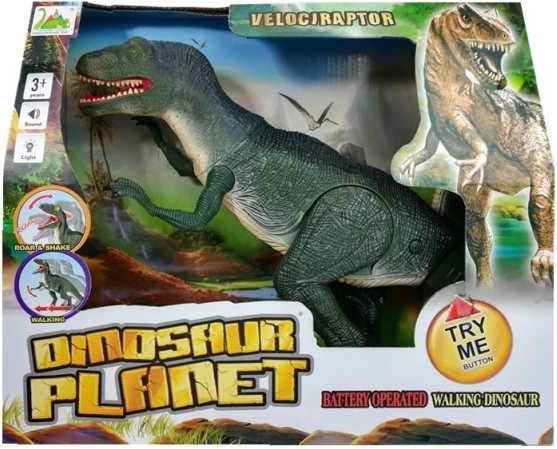 Acest velociraptor detaliat, cu structură masivă și musculoasă și textură realistă, îi va încânta pe micii iubitori de dinozauri. Datorită alimentării cu baterii AA, după pornire merge, scoate un răget și i se aprind ochii, amplificând experiența de joc autentică.