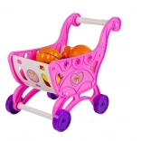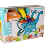 Setul include cărucior de cumpărături, casă de marcat, alimente de jucărie și alte accesorii pentru un joc realist.