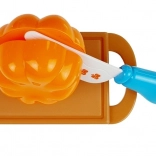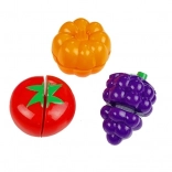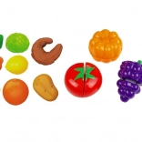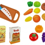 Setul conține diverse accesorii precum cărucior de cumpărături, alimente de jucărie sub formă de roșie, morcov sau dovleac, precum și un scanner de jucărie și casa de marcat.