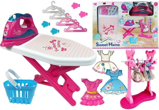 Masa de călcat și fierul de călcat din plastic cu imprimeu 'Sweet Home' aduc distracție autentică.