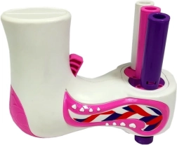 Cu setul pentru împletit părul copiii dumneavoastră pot crea coafuri elegante ușor și rapid. Conține un instrument special de împletit cu trei suporturi rotative care țin șuvițele de păr. Separatorul mov facilitează împărțirea părului în trei părți egale și asigură introducerea ușoară pentru împletire.