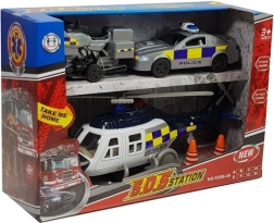 Acest set complex de poliție, în design alb-albastru, oferă copiilor tot ce au nevoie pentru intervenții palpitante: elicopter cu sirenă și lumină roșie, mașină de poliție realistă și motocicletă, completate de conuri de trafic. Jucăriile sunt proiectate cu accent pe detalii fidele și execuție durabilă, pentru a rezista chiar și jocului intens.