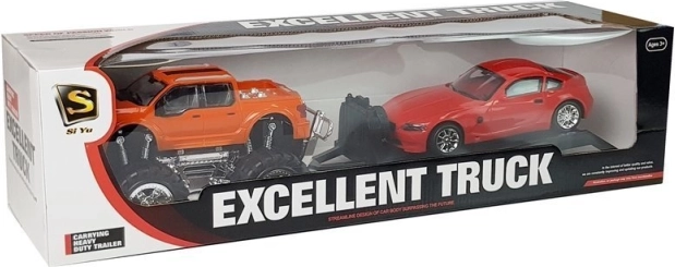 - Set de jucării: monster truck, remorcă de tractare, mașină sport
