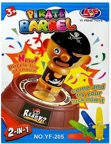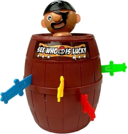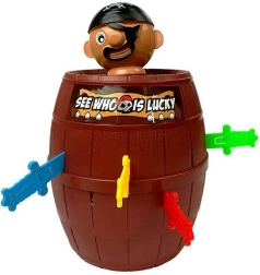 Acest joc de pirați plin de voie bună distrează atât copiii, cât și adulții. Așezați piratul în butoi, introduceți pe rând bețișoarele/săbiile și urmăriți la cine va sări piratul. Principii simple, runde rapide și multă distracție fac din acest joc o alegere ideală pentru serile în familie și petrecerile pentru copii.