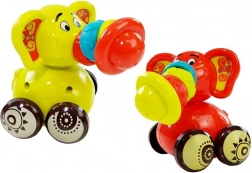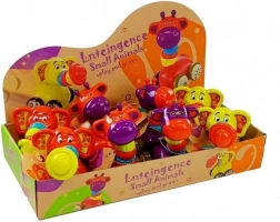 Aceste jucării colorate îmbină animalele îndrăgite cu micuțe vehicule, pentru ca cei mici să își dezvolte abilitățile prin joacă distractivă. Proboscida elastică a elefantului și gâtul girafei sunt prinse cu un elastic, pot fi întinse și, în mișcare, produc un clinchet plăcut. Elefantul are pe trompă trei inele din cauciuc și o pălărioară din plastic, iar girafa este decorată cu inele roșii, turcoaz și verzi.