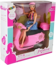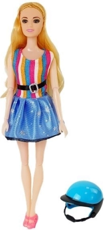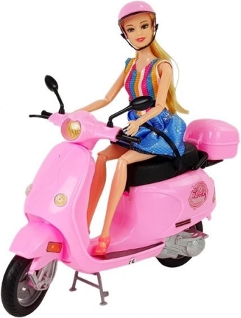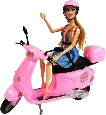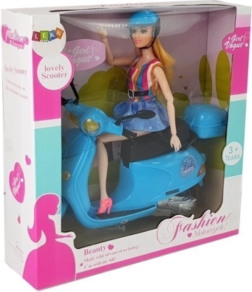 Păpușa din set are părul lung, blond, ce poate fi pieptănat și stilizat. Este îmbrăcată într-o rochie stilată cu dungi albastre și colorate, completându-i aspectul elegant. Mâinile și picioarele mobile permit așezarea ușoară a păpușii pe scuter, permițând copiilor să creeze propriile scenarii și povești.