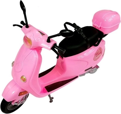 Scuterul roz este fabricat cu atenție la detalii, oferindu-i un aspect foarte realist. Scuterul are o construcție stabilă și suporturi laterale care asigură stabilitate în timpul jocului. Cutia practică de depozitare din spate poate fi deschisă și închisă, ideală pentru depozitarea accesoriilor mici. În plus, setul include o cască în aceeași culoare, care îi conferă jocului un aspect realist și asigură siguranța păpușii.