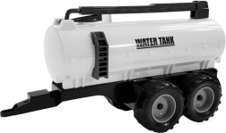 Remorcă-cisternă albă cu roți robuste pentru o deplasare lină. Perfectă pentru scenarii realiste de irigare la fermă.