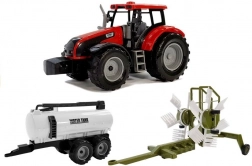 Setul tractor + greblă rotativă + cisternă este ideal pentru copiii care iubesc utilajele agricole. Tractorul roșu, cu cabină realistă, tractează fie grebla rotativă verde, fie cisterna albă pentru apă, ambele cu roți mari pentru manevrare ușoară. Copiii își pot crea astfel propria gospodărie și pot înțelege cum funcționează mașinile agricole.