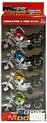 Acest set conține patru modele colorate de motociclete în culorile roz, albastru, auriu și verde. Fiecare motocicletă este realizată din material rezistent și are un mecanism funcțional cu întoarcere: este suficient să tragi motocicleta înapoi și să o eliberezi, iar aceasta pornește înainte. Datorită designului detaliat, aceste modele atrag atenția copiilor și oferă distracție de durată.