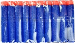 Set de 10 gloanțe de spumă moi pentru pistoale de jucărie, care garantează distracție extraordinară. Gloanțele sunt terminate cu un element de cauciuc și sunt realizate într-o culoare albastru închis cu capete portocalii.