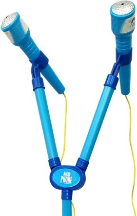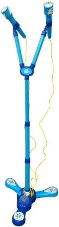 Acest set karaoke multifuncțional, în culoare albastră, este un cadou grozav pentru copiii care iubesc cântatul și scena. Datorită stativului reglabil și celor două microfoane separate, pot cânta solo sau în duet cu prietenii. Efectele luminoase și cele 12 melodii prestabilite transformă orice cameră într-o mică scenă.