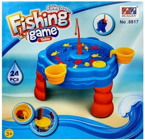 - Set complet: 2 undițe, 15 peștișori, element pentru valuri, 2 pahare cu sită, bază–măsuță, 3 picioare
