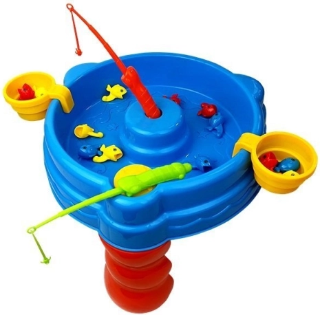 Descoperă distracția clasică cu apă într-o interpretare modernă. Măsuța de joc stabilă, cu bazin circular și element mecanic pentru crearea valurilor, pune în mișcare apa și peștișorii, astfel încât pescuitul este captivant și plin de râsete. Copiii își antrenează coordonarea ochi–mână, răbdarea și învață competiția corectă în timp ce se joacă.
