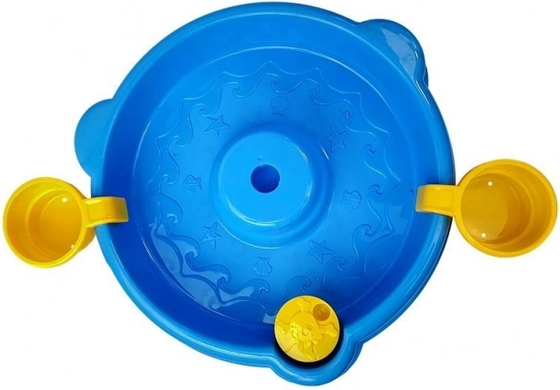 Bazin circular cu reliefuri ale lumii subacvatice și suporturi pentru pahare creează mediul ideal pentru prins peștișori și joacă senzorială cu apă.