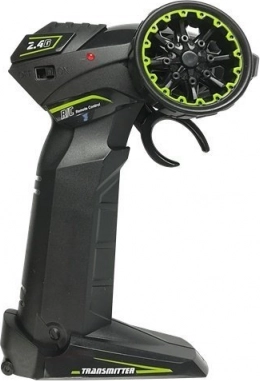 Transmițătorul modern pe frecvența de 2,4 GHz permite curse în mai mulți participanți fără interferențe și oferă o rază de aproximativ 30–50 de metri.