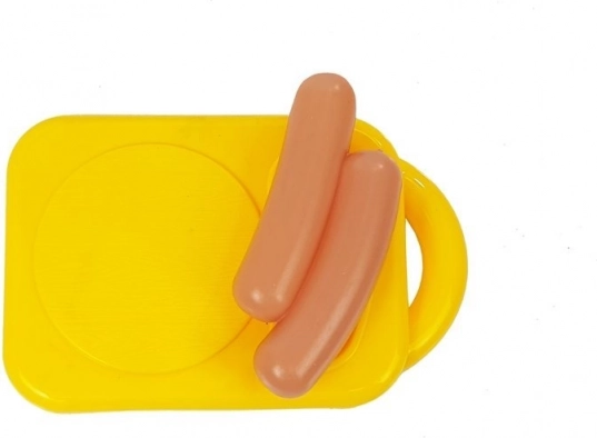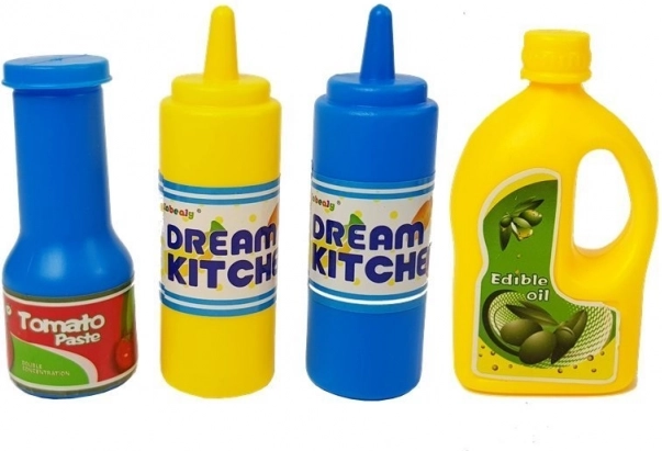 - aragaz de bucătărie, cântar de bucătărie, tocător, 4 cești cu farfuriuțe, ceainic, solniță, cratiță, oală, tigaie cu două mânere, 3 capace, farfurioară, coș, pahar, tacâmuri (2 cuțite, 2 furculițe, 1 lingură), 2 spatule, alimente (crenvurști, ou, banană cu scai, porumb cu scai, căpșună cu scai, ciupercă cu scai, morcov, lămâie, alună), sticluțe (ketchup, ulei, 2 sosuri)