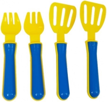 Fructe colorate, legume, ou sau crenvurști și sticluțe cu „ketchup” și „ulei” apropie copiii de lumea bucătăriei și le îmbogățesc vocabularul.