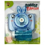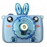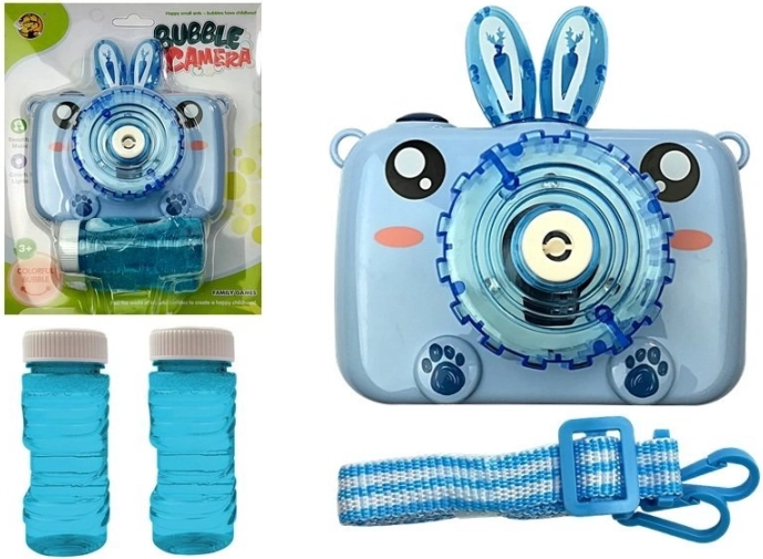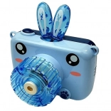 Un frumos aparat foto albastru care generează bule de săpun. Cadoul ideal pentru distracție pe vreme caldă. Printre alte funcții ale aparatului se numără efecte luminoase și sonore. Este suficient să turnați lichidul, să apăsați butonul și copilul dvs. va vedea cum ies o mulțime de bule de săpun din obiectivul aparatului foto. Ideal pentru diverse petreceri, aniversări sau ca jucărie pentru copilul dvs. Setul include o curea pentru a fi purtat comod la gât ca un aparat foto adevărat. Datorită urechilor amplasate pe partea superioară, aparatul seamănă cu un iepuraș.