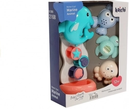 Sunt incluse trei animale marine, care plutesc pe suprafața apei și în jurul copilului dumneavoastră, aducând un zâmbet pe fața lui.