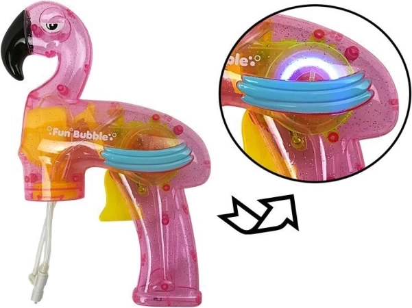 Înveselește-ți distracția cu un pistol de bule unic în formă de flamingo. Combină perfect designul jucăriei cu realizarea atrăgătoare a flamingoului.