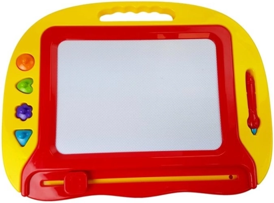 Tabla magnetică roșie este jucăria ideală pentru micii artiști. Această jucărie distractivă le permite copiilor să creeze fără limite cu ștergere simplă a desenului. Include: