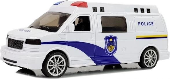 Luminile de avertizare și sirena realiste transformă camera într-o scenă de acțiune și le oferă copiilor ore întregi de joc creativ. Vehiculul alb cu detalii albastre și inscripții „POLICE” arată credibil și îi va încânta pe toți micii fani ai serviciilor de intervenție. Datorită dimensiunilor compacte de 16 × 7 × 7 cm, se potrivește perfect în mână și este ideal și pentru călătorii.